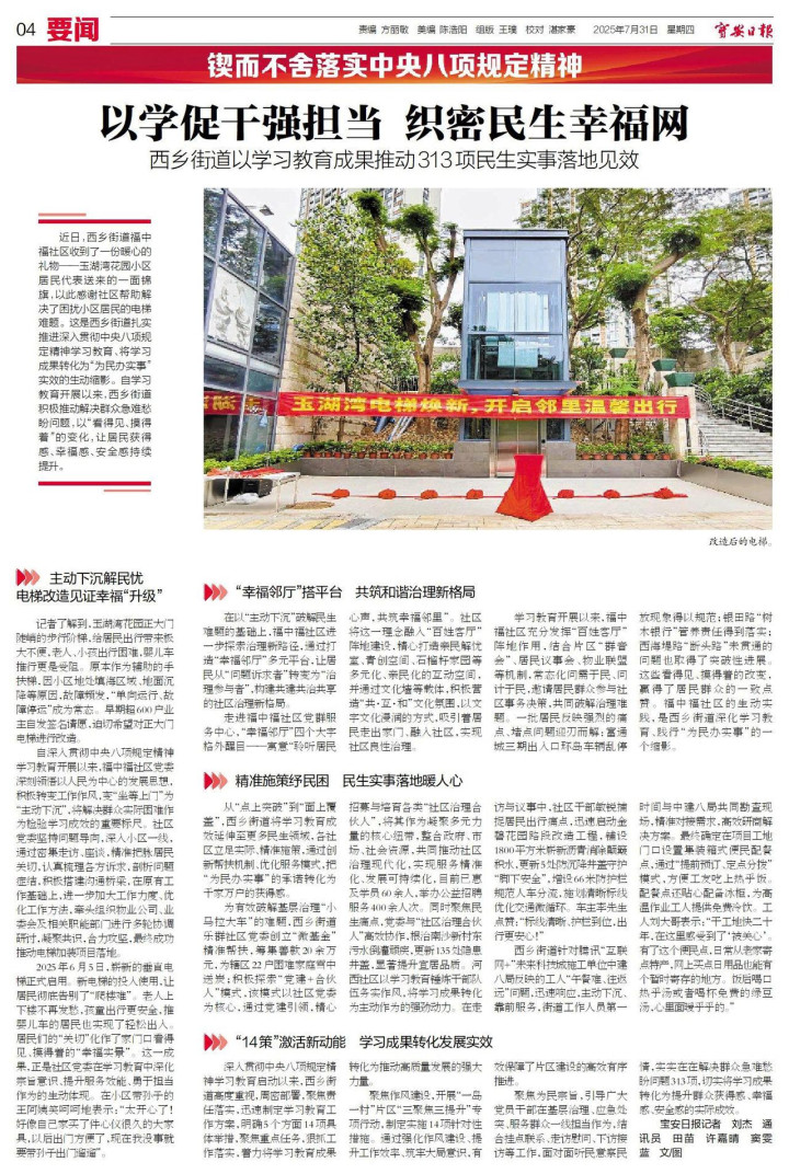 从“点上突破”到“面上覆盖”,西乡街道将学习教育成效延伸至更多民生领域,各社区立足实际、精准施策,通过创新帮扶机制、优化服务模式,把“为民办实事”的承诺转化为千家万户的获得感。