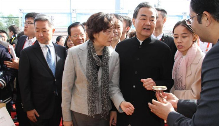 其实,自他们夫妻二人成婚后,多年来都鲜少一起参加活动,所以这张照片就显得尤为珍贵,此照片是2015年,王毅和夫人一起参加的“大爱无国界”国际义卖的活动。