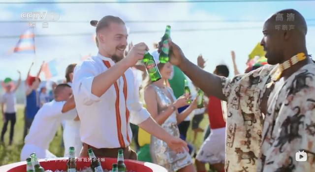 结果就是很多人忽略了青岛啤酒在2018年俄罗斯世界杯黄金广告位的投放。那个广告讲的是全世界各个国家和民族的人聚在一起享受足球和啤酒,不只有品位,还是个很美好的画面,而且也很成功。