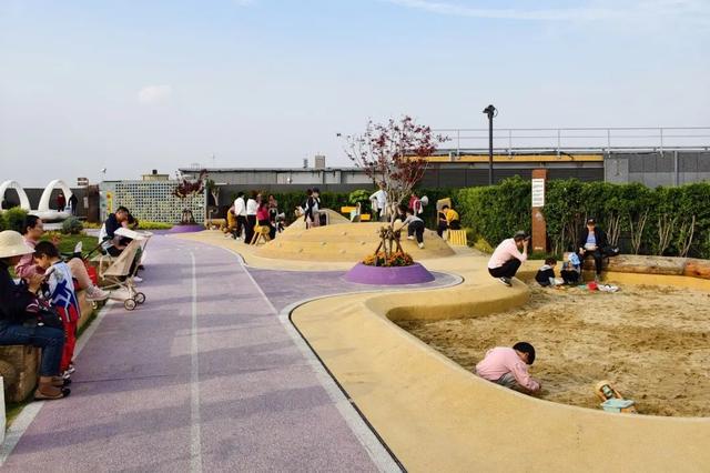 百联西郊的屋顶空间亦是一大亮点。项目引入洛克公园篮球场、网球场,露天区域则配备了儿童乐园和沙坑等设施,还有大片绿地可供宠物游玩,强化了可供亲子、爱宠等家庭角色的多功能公共空间,从而提升项目的社区黏度。