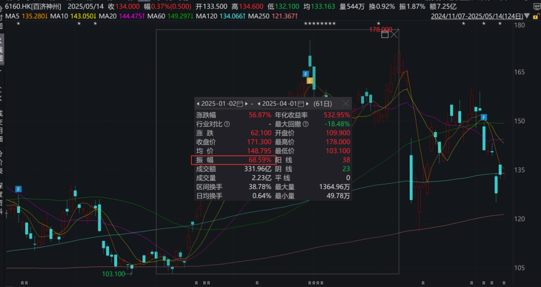 受上述消息影响,百济神州A股在5月12日单日跌超9%。不过,由于今年一季度销售放量,百济神州的股价一度涨近七成。