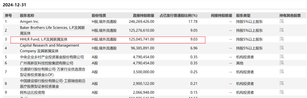 据了解,HHLR为高瓴旗下投资二级市场的平台。若以百济神州港股5月9日的收盘价140.4港元/股计算,高瓴此次套现金额约为22.46亿港元。