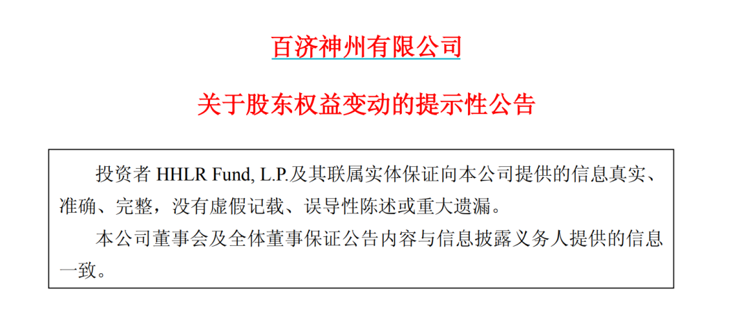 5月14日晚间,百济神州公告称,公司股东HHLR Fund, L.P.和Hillhouse BGN Holdings Limited告知公司,5月9日,HHLR Fund, L.P.及其联属实体减持公司境外流通股股份1600万股,导致持股总数减少至6855.11万股,持股比例从6.03%变更为4.89%,不再为公司持股5%以上股东。